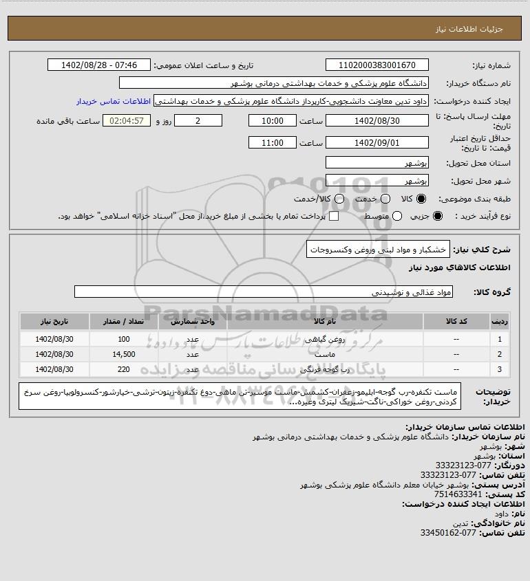 شرح کلی نیاز: خشکبار و مواد لبنی وروغن وکنسروجات