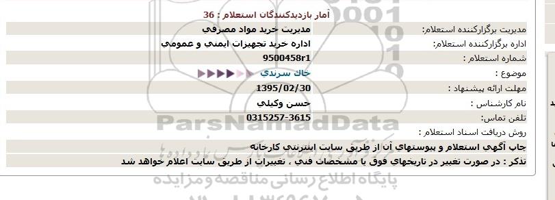 اداره برگزارکننده استعلام: اداره خرید تجهیزات ایمنی و عمومی