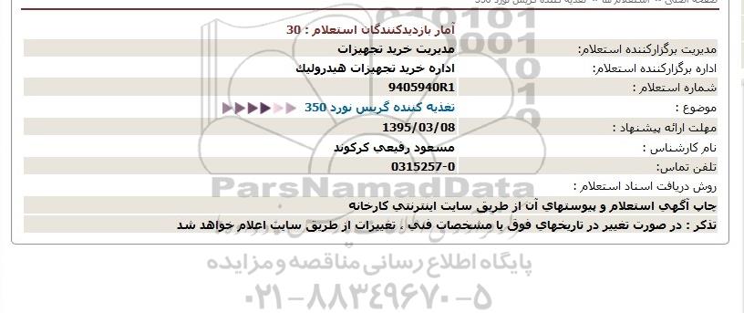 اداره برگزارکننده استعلام: اداره خرید تجهیزات هیدرولیک