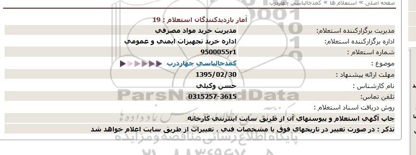 اداره برگزارکننده استعلام: اداره خرید تجهیزات ایمنی و عمومی