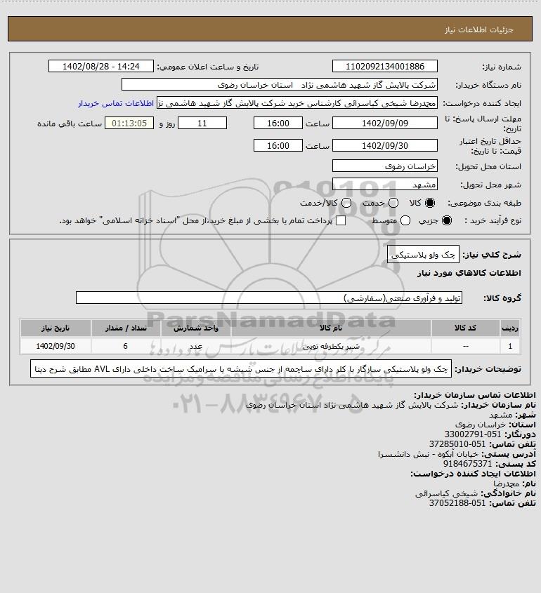 نام دستگاه خریدار:شرکت پالایش گاز شهید هاشمی نژاد استان خراسان رضوی