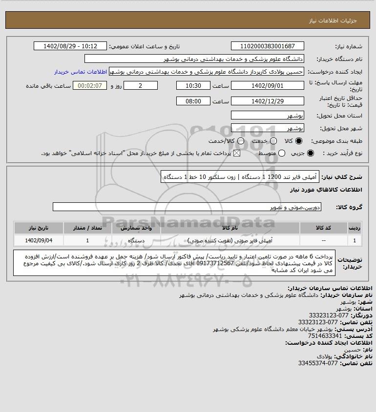 نام دستگاه خریدار:دانشگاه علوم پزشکی و خدمات بهداشتی درمانی بوشهر