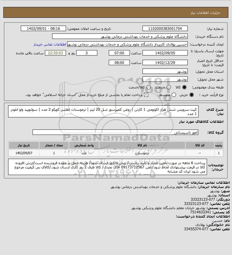 نام دستگاه خریدار:دانشگاه علوم پزشکی و خدمات بهداشتی درمانی بوشهر