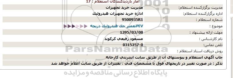 اداره برگزارکننده استعلام: اداره خرید تجهیزات هیدرولیک