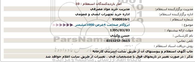 اداره برگزارکننده استعلام: اداره خرید تجهیزات ایمنی و عمومی