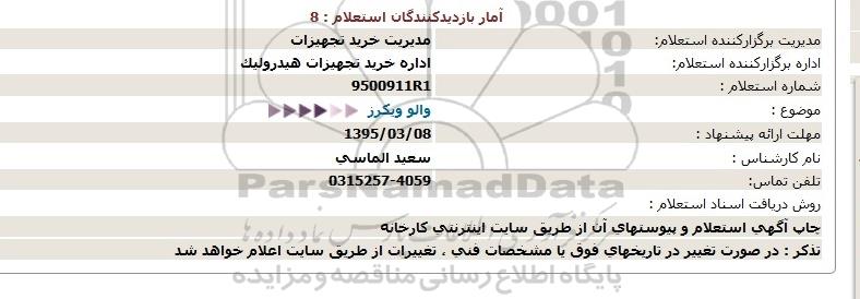 اداره برگزارکننده استعلام: اداره خرید تجهیزات هیدرولیک