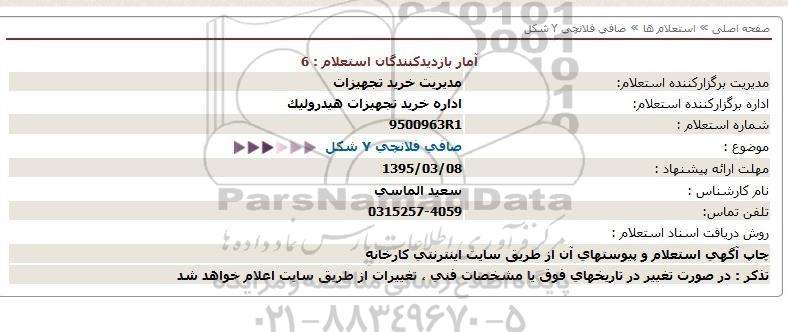 اداره برگزارکننده استعلام:  اداره خرید تجهیزات هیدرولیک