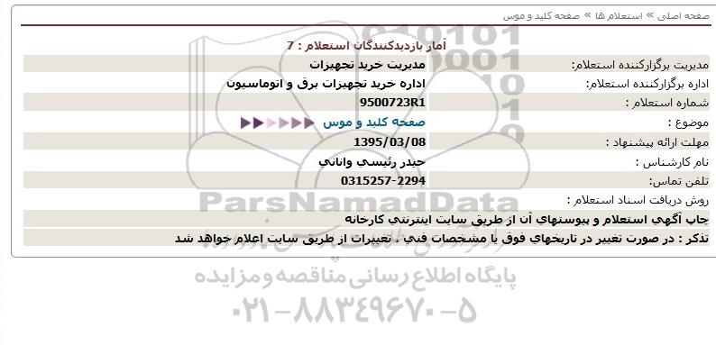 اداره برگزارکننده استعلام: اداره خرید تجهیزات برق و اتوماسیون