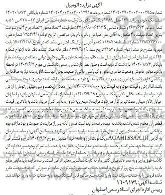 مزایده از ساعت 9 الی 12 روز یکشنبه مورخ 1402.9.19
