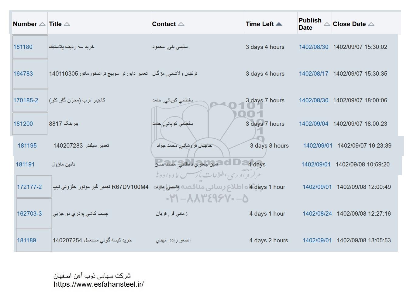 | 162703-3 | چسب کاشی پودری دو جزئی | زمانی فر، قربان | 4 روز 1 ساعت | 1402.9.8 |
