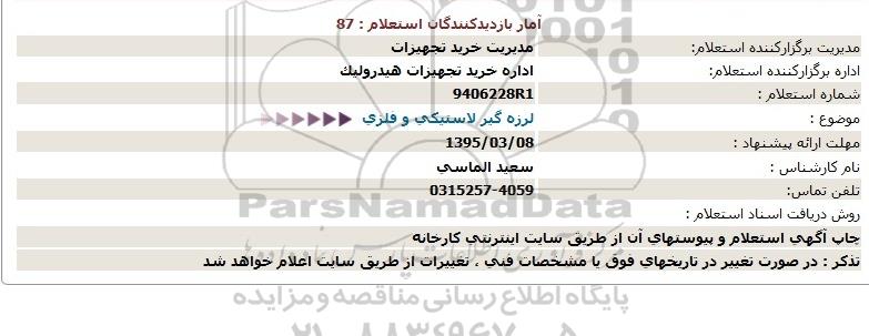 اداره برگزارکننده استعلام: اداره خرید تجهیزات هیدرولیک