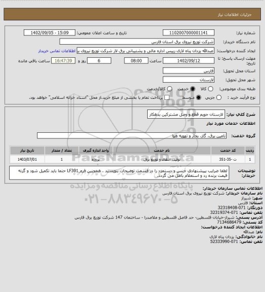 شرح کلی نیاز: لارستان جویم قطع و وصل مشترکین بدهکار