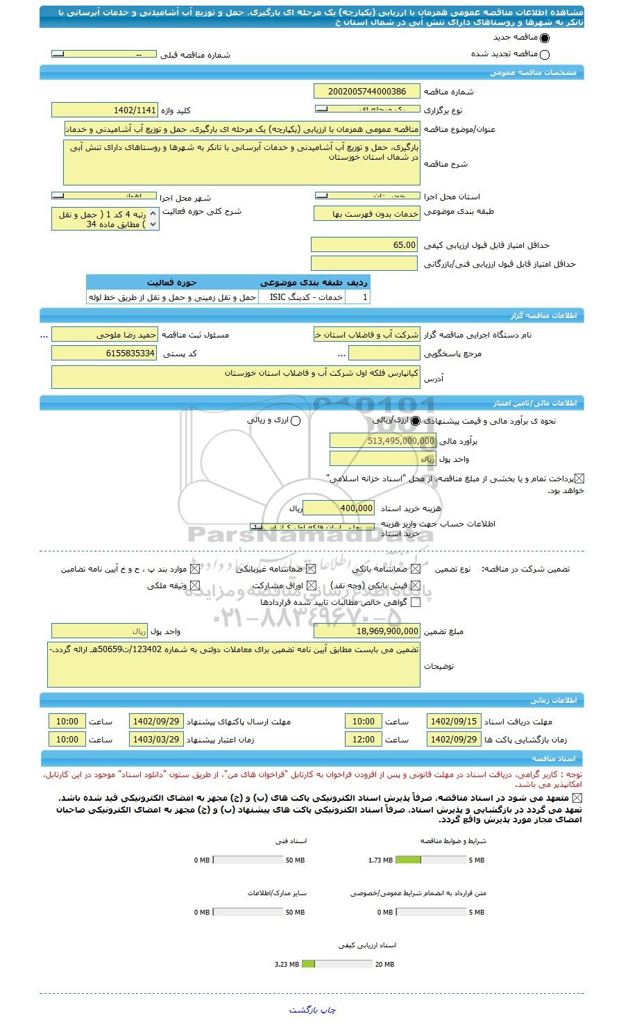 | مبلغ تضمین | 18,969,900,000 | واحد پول | ریال |