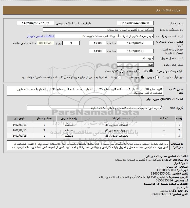 نام دستگاه خریدار:شرکت آب و فاضلاب استان خوزستان