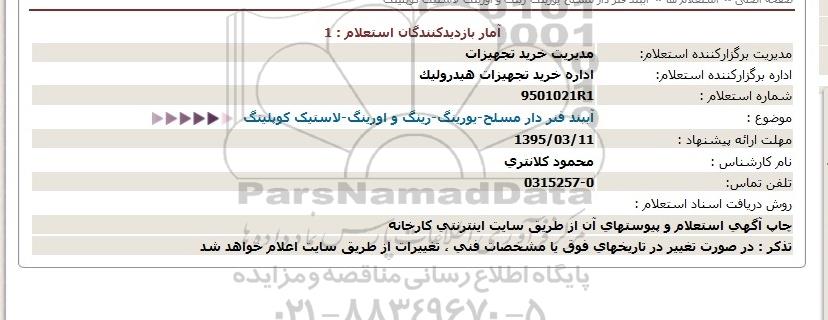اداره برگزارکننده استعلام: اداره خرید تجهیزات هیدرولیک