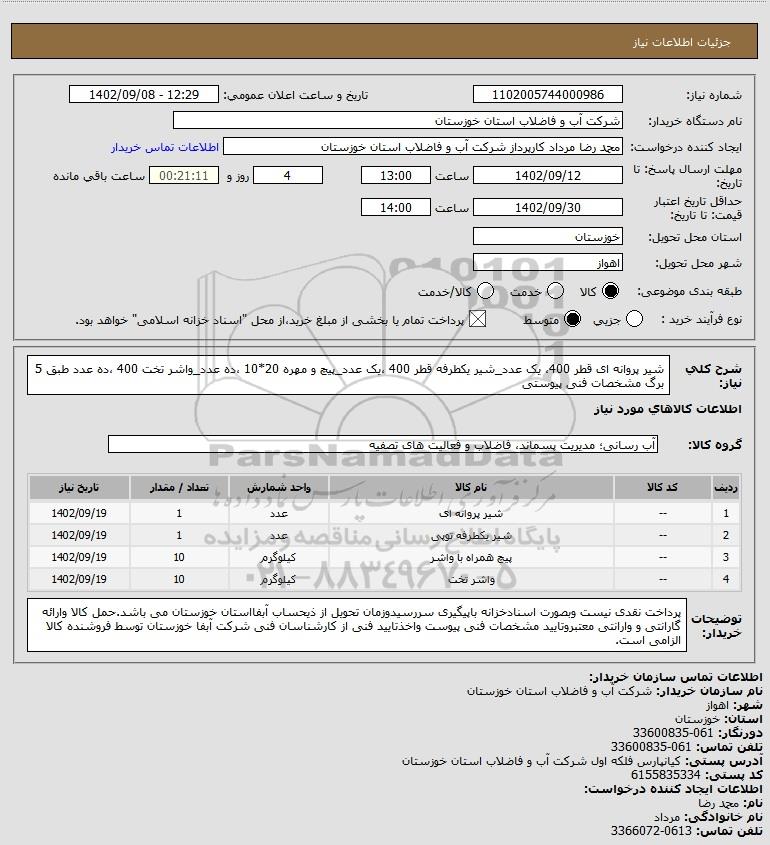 نام سازمان خریدار: شرکت آب و فاضلاب استان خوزستان