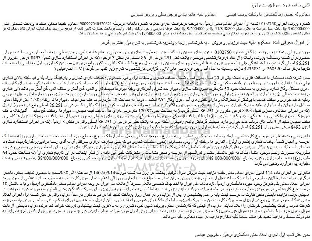 شعبه صادر کننده:شعبه اول اجرای احکام مدنی دادگستری شهرستان اردبیل/قدیم