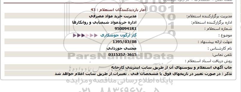 اداره برگزارکننده استعلام: اداره خرید مواد شیمیایی و روانكارها