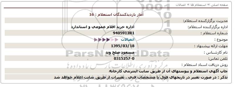 اداره برگزارکننده استعلام:     اداره خرید اقلام عمومی و استاندارد