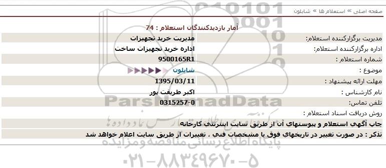 اداره برگزارکننده استعلام:     اداره خرید تجهیزات ساخت