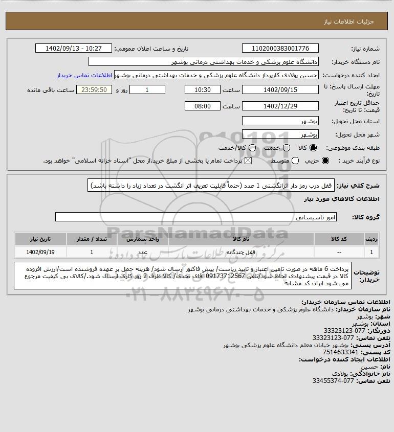 نام دستگاه خریدار:دانشگاه علوم پزشکی و خدمات بهداشتی درمانی بوشهر