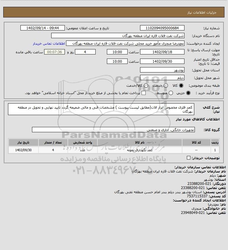 نام دستگاه خریدار:شرکت نفت فلات قاره ایران منطقه بهرگان