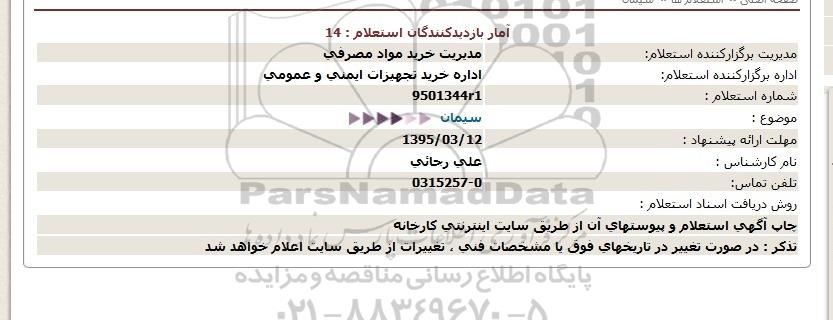 اداره برگزارکننده استعلام: اداره خرید تجهیزات ایمنی و عمومی
