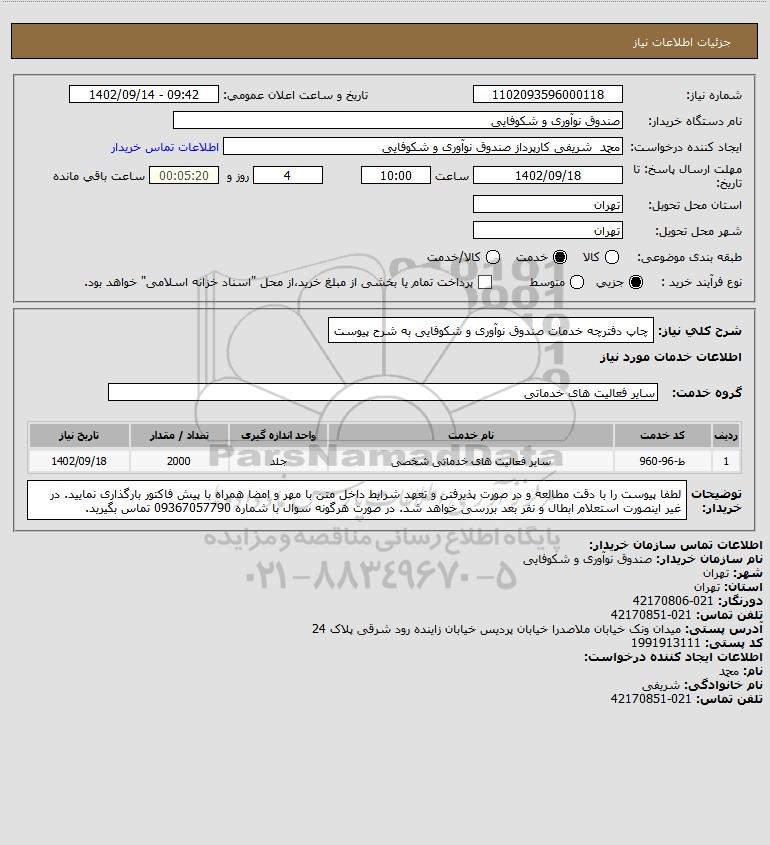 شرح کلی نیاز: چاپ دفترچه خدمات صندوق نوآوری و شکوفایی به شرح پیوست