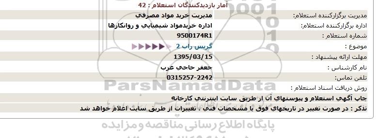 اداره برگزارکننده استعلام: اداره خریدمواد شیمیایی و روانکارها
