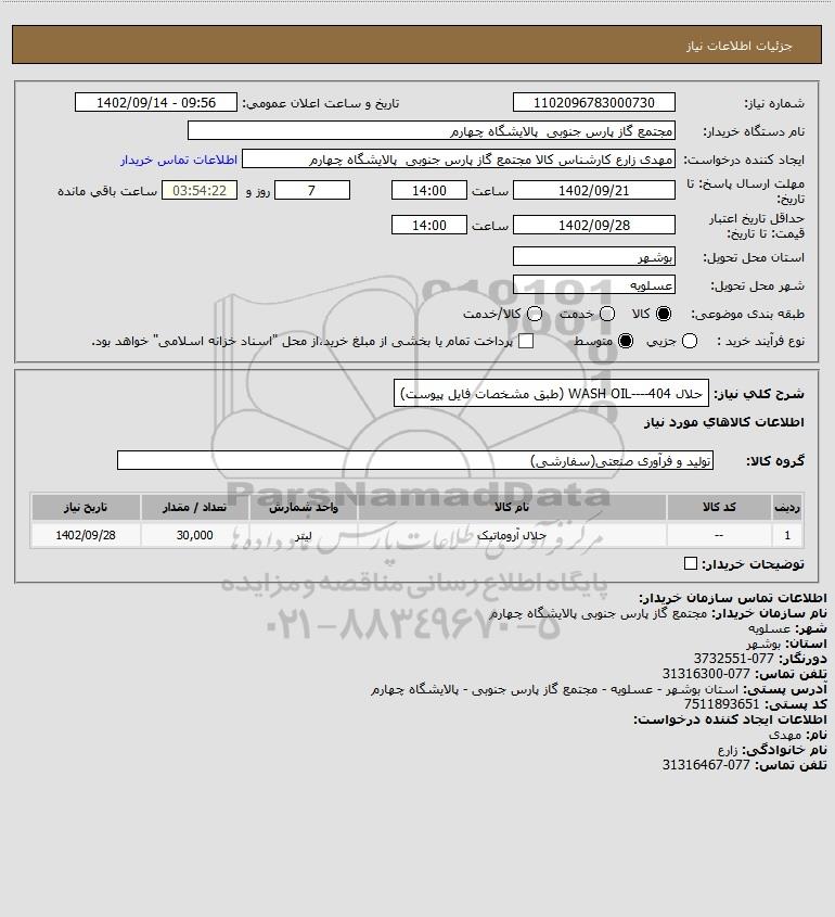 شرح کلی نیاز: حلال 404----WASH OIL (طبق مشخصات فایل پیوست)