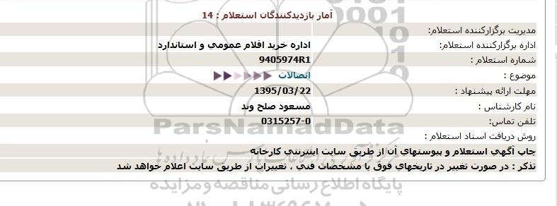 اداره برگزارکننده استعلام: اداره خرید اقلام عمومی و استاندارد