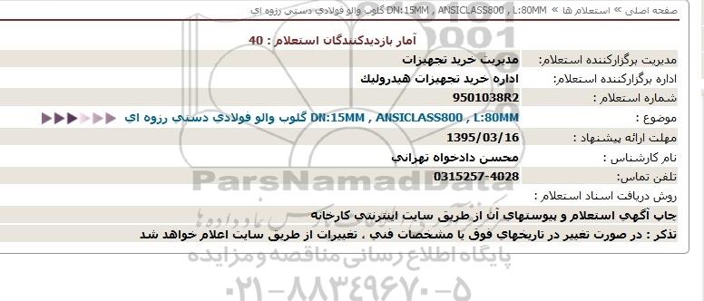 اداره برگزارکننده استعلام: اداره خرید تجهیزات هیدرولیک