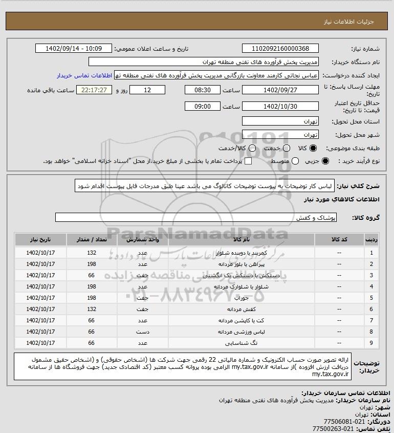 نام دستگاه خریدار:مدیریت پخش فرآورده های نفتی منطقه تهران