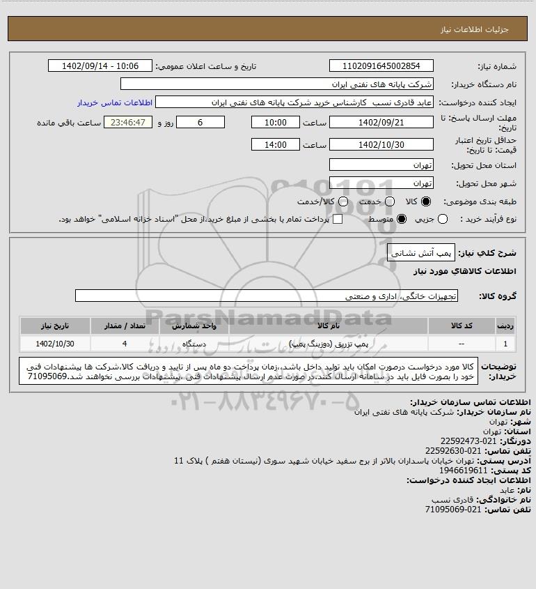 | 1 | -- | پمپ تزریق (دوزینگ پمپ) | دستگاه | 4 | 1402/10/30 |