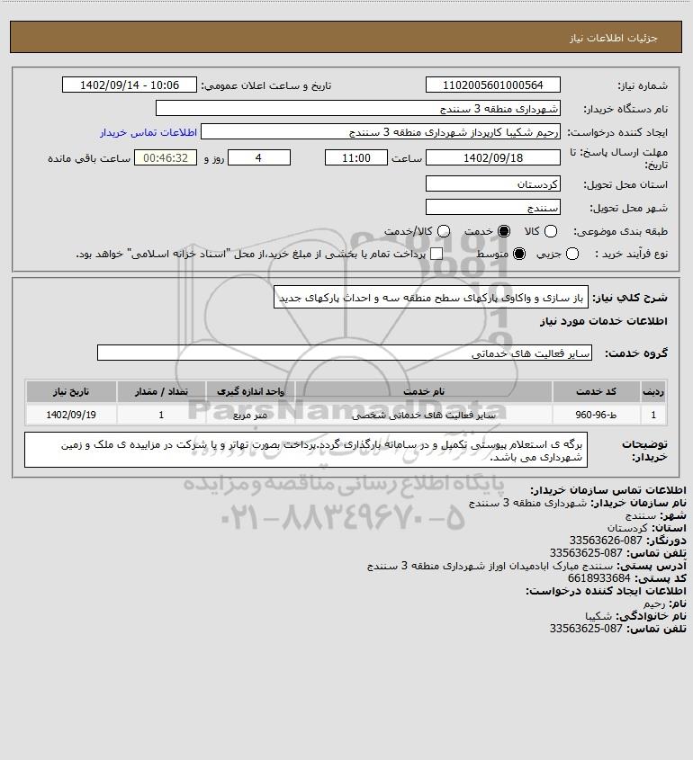 نام سازمان خریدار: شهرداری منطقه 3 سنندج