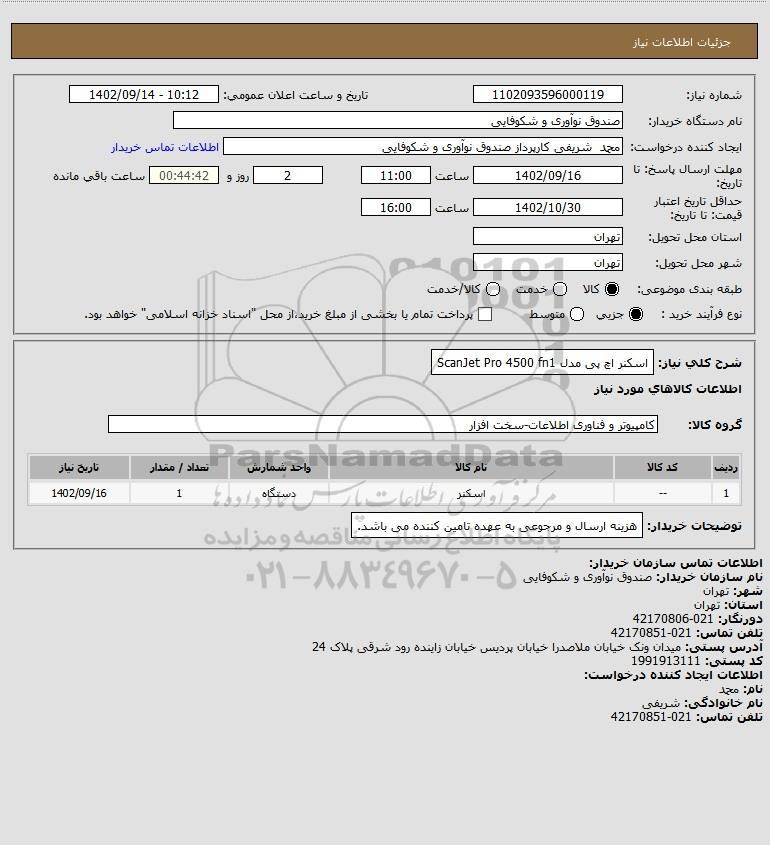 | 1 | -- | اسکنر | دستگاه | 1 | 1402/09/16 |