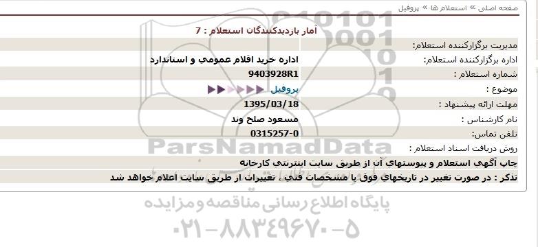 اداره برگزارکننده استعلام: اداره خرید اقلام عمومی و استاندارد