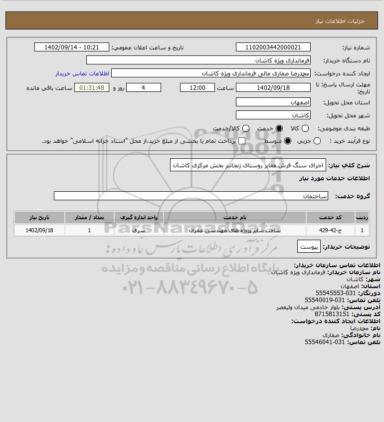 نام دستگاه خریدار:فرمانداری ویژه کاشان