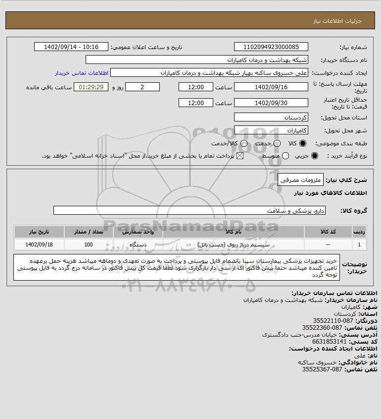 نام دستگاه خریدار:شبکه بهداشت و درمان کامیاران