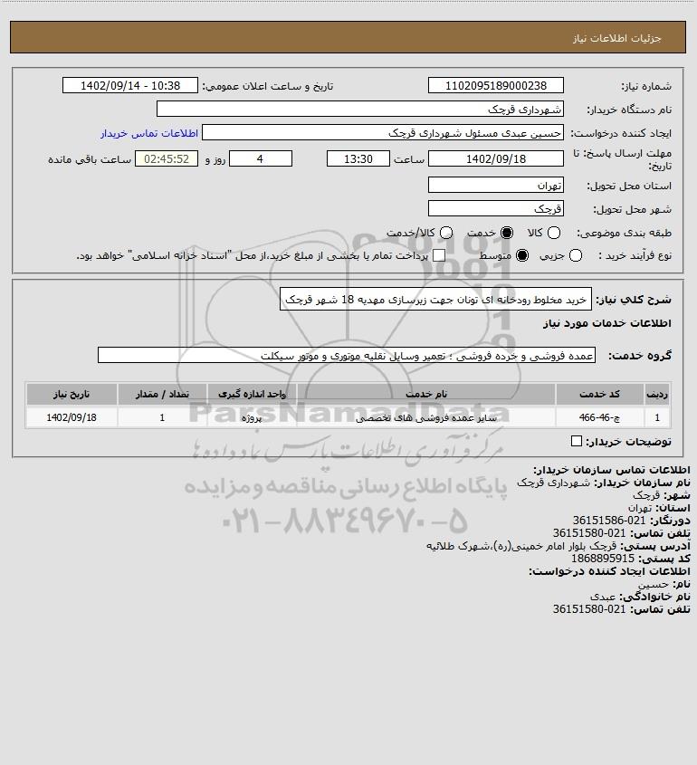 شرح کلی نیاز: خرید مخلوط رودخانه ای تونان جهت زیرسازی مهدیه 18 شهر قرچک