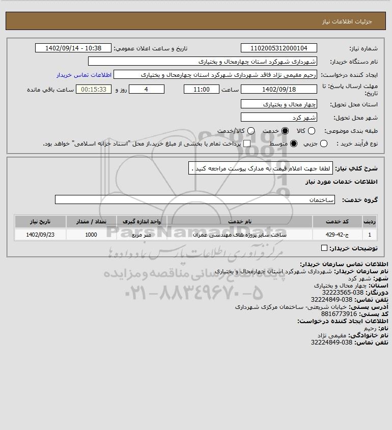 نام دستگاه خریدار:شهرداری شهرکرد استان چهارمحال و بختیاری