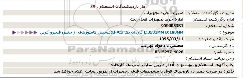 اداره برگزارکننده استعلام: اداره خرید تجهیزات هیدرولیک