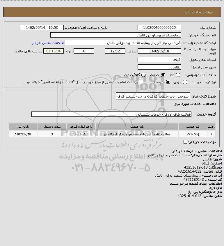شرح کلی نیاز: سرویس ایاب وذهاب کارکنان در سه شیفت کاری