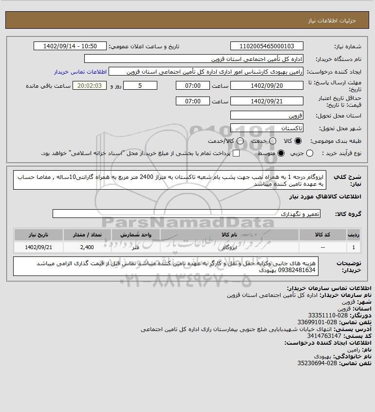 نام دستگاه خریدار:اداره کل تأمین اجتماعی استان قزوین