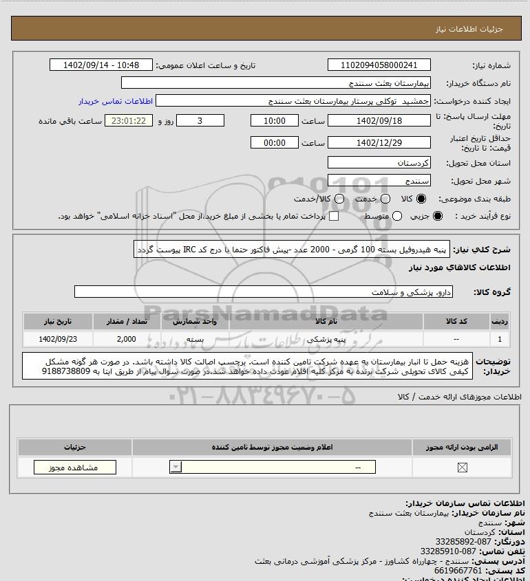 شرح کلی نیاز: پنبه هیدروفیل بسته 100 گرمی - 2000 عدد -پیش فاکتور حتما با درج کد IRC پیوست گردد