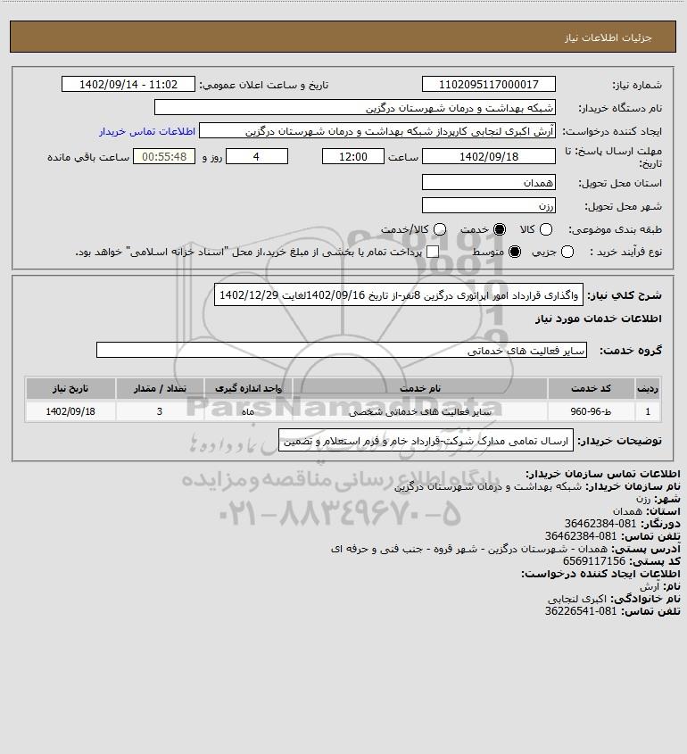 استعلام واگذاری قرارداد امور اپراتوری درگزین 8نفر-از تاریخ 1402/09/16لغایت 1402/12/29, استعلام واگذاری قرارداد امور اپراتوری درگزین 8نفر-از تاریخ 1402/09/16لغایت 1402/12/29