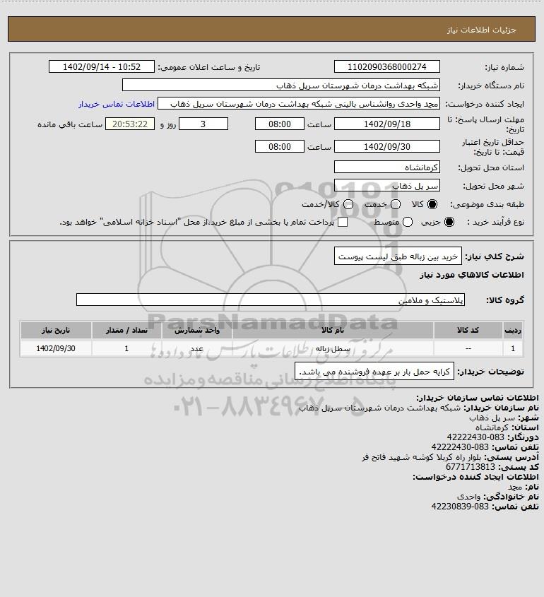 نام دستگاه خریدار:شبکه بهداشت درمان شهرستان سرپل ذهاب