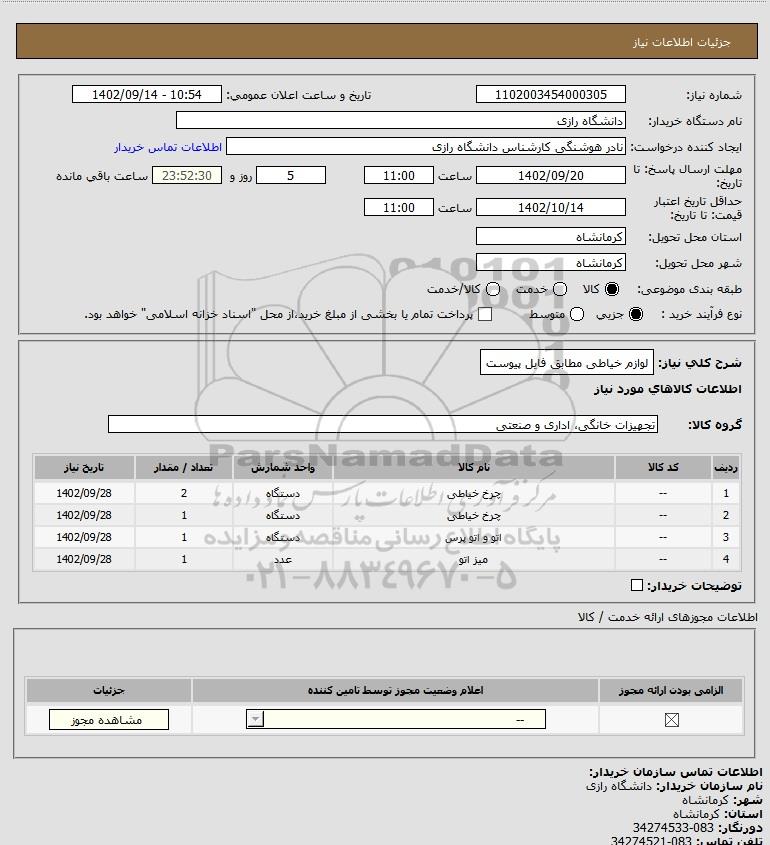 شرح کلی نیاز: لوازم خیاطی مطابق فایل پیوست
