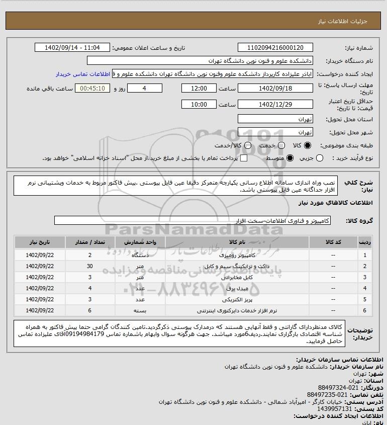 نام دستگاه خریدار:دانشکده علوم و فنون نوین دانشگاه تهران