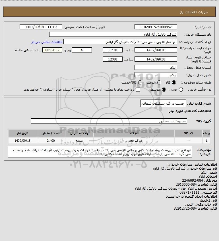 نام دستگاه خریدار:شرکت پالایش گاز ایلام